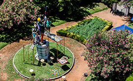 is a studio of Danish architects Sine Lindholm and Mads-Ulrik Husum who developed alongside the IKEA innovation lab Space10, the spherical “Growroom” - a DIY garden structure, a multi-sensory urban farm pavilion for people to smell, taste and enjoy. The idea seeks to explore how cities can feed themselves through food producing architecture. Plans for the structure have been made available online for free via Space10’s open source platform, giving anyone the opportunity to build their own 3-dimensional garden. At 180 Creative Camp’s Factory we have decided to also build our own Growrooms together with the locals.